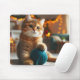 mignon chat brun et blanc jouant avec un fil mousepad. OEuvre générée par l'IA.