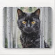 Tapis De Souris Chat noir regardant par la fenêtre humide