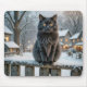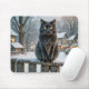 Tapis De Souris Chat noir sur une clôture neigeuse