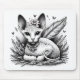Dégustez la grâce d'un chat Sphynx dans ce dessin enchanteur à l'encre noire et blanche. Ornée de fleurs délicates et accompagnée de papillons géants, cette muse féline incarne l'élégance et le charme.