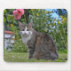Tabby cat gris et blanc sur herbe dans le jardin fleuri d'été.