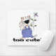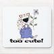 Un blanc avec le brun barre le chat de minou stockant une fleur et un texte lilas qui lit "trop mignon !" sur le T-shirts, les tasses, les boutons, les sacs, et plus de chat.