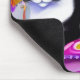Mouse Pad dans une illustration d'un chat tuxedo noir et blanc sur un coussin, avec un arrière - plan exotique à motifs dans les tons magenta et violet