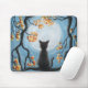 Tapis De Souris Chat Whimsical en bleu Pleine lune d'arbre