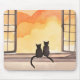 Chats dans la fenêtre | Aquarelle coucher de soleil Silhouette Mousepad