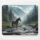 Belle image d'un cheval debout dans un ruisseau, est présenté sur ce tapis de souris. Une belle scène nature pour reposer votre souris ! Offrez-vous ou offrez-vous un cadeau pour les anniversaires, les vacances, les fans de chevaux et plus encore! Le design est également disponible sur un chargeur sans fil.