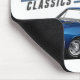 Voici un rendu d'une voiture musculaire classique américaine bleue 1967 avec des graphismes de style vintage dans l'arrière - plan pour un look rétro.