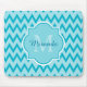 Tapis De Souris Chevron Zigzag Nom et Monogramme tendance Turquois