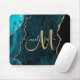 Tapis De Souris Chic Turquoise Gold Agate Script Personnalisé Mono