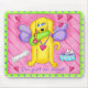 "Je ne suis qu'un ange". Le chien ange lunatique est plein de vie avec des points, des yeux aimés, un halo et des coeurs pour montrer son amour. Un journal roulé et un bol de nourriture pour chien rempli d'os accompagnent "Angel Dog". Le texte sous le chien dit "Je ne suis qu’un ange". Angel Dog est montré sur un arrière - plan rayé rose et une bordure verte. Cet adorable petit chien vous fera sourire à chaque coup de souris !