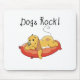 Un mignon chien brun se détend joyeusement sur son lit de chiot et le texte noir dit "Chiens Rock !" sur nos T-shirts Dogs Rock, mugs, mousepads, boutons, cartes et plus !