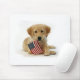 Célébrez le Jour de la Déclaration d'Indépendance avec une photo adorable de notre collection de SNAPshotz. Cette 4 juillet photo comporte un chiot doux de golden retriever, se couchant, tenant un drapeau américain.