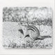 Un croquis noir et blanc avec une photo de gros plan d'un chipmunk au sol. C'est l'un des chipmunks qui vit dans un terrain de camping à Ticondéroga, NY. Cette image a été prise par Debbie Quick of Debs Creative Images. Pour voir d'autres photos de Debbie, consultez son site Web à l'adresse suivante : www.debscreativeimages.com