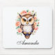 Tapis De Souris Chouette d'aquarelle mignonne et Roses feuillus