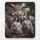 Un tapis de souris de famille de chouettes avec un hibou adulte et deux chouettes.