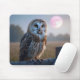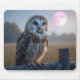 Tapis De Souris Chouette sur une clôture avec lune rose