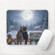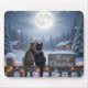 Tapis De Souris Christmas Cats Embracing On a Snowy Fence