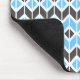 Ce pavé de souris est doté d'un motif géométrique coloré en bleu, gris foncé et blanc.