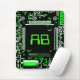 Design moderne avec un gros plan d'un circuit board en vert, noir et blanc, et vos initiales en vert. Mousepad avec un design personnalisable pour vous de personnaliser avec votre propre texte, photos et idées. Créé à l'aide d'une photographie originale et de techniques numériques de Jess Perry.