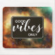 Uniquement des bonnes vibrations ! Une affirmation réfléchie encourage la motivation et l'inspiration de manière attentive dans les moments difficiles et sert de rappel pour passer à une mentalité positive. Uniquement des bonnes vibrations, un design de citation inspirant comprend un script tendance et une conception de calligraphie avec du texte blanc présenté avec un rectangle arrondi sombre encadré sur une photo spatiale d'une galaxie étoilée dans l'univers en arrière-plan.