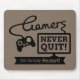 Un mouspad d'une manière amusante pour des gamers et des amants avides de jeu vidéo ! Le texte lit des "Gamers non jamais stoppés ! Nous nous remettons en marche simplement !" Appuyez sur juste le bouton de reprise pour reprendre le jeu ! Les gamers de mot est conçus pour ressembler au fil pour le contrôleur de jeu vidéo tandis que la boîte ressemble à un moniteur de télévision ou d'ordinateur. Une citation drôle qui montre la détermination du gamer ! La couleur d'arrière - plan peut être changée.
