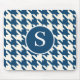 Tapis De Souris Classic Houndstooth Motif Bleu & Blanc Monogramme