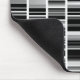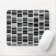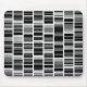 Un design numérique abstrait composé de huit colonnes de barres d'épaisseur variée dans différentes nuances de gris. Peut-être que cela rappelle les codes à barres, les strates dans la roche ou les couches de pages d'un livre, ou même comment on peut imaginer des traces de données sur un disque. Ce qui rend un design attrayant et moderne assez approprié pour un tapis de souris.