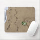Deux traces de pas, ainsi qu'un coeur tiré dans le sable de la plage.