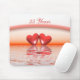 Mousepad avec ma conception de deux coeurs coralliens flottant sur l'eau sous un arc-en-ciel. Le texte personnalisable dit "35 ans".