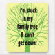 Silhouette d'un arbre et légende "je suis coincé dans mon arbre généalogique et ne peux pas descendre."