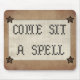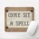 This Come Sit A Spell Mousepad features a primitive style mousepad with a cross-stitched style text.