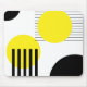 abstract illustration with geometrical (circles and stripes) shapes decoration in yellow and black colors on white background.