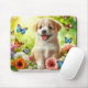 Dans un jardin animé rempli de fleurs colorées, un chiot gai se trouve au centre, rayonnant de joie pure. Ses yeux brillants scintillent de bonheur alors qu'il brille un sourire aux lèvres.