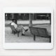 Lecture du papier et de la pensée pour le jour en dehors du Tate Modern par le pont de millénaire sur la banque du sud de la Tamise Londres.