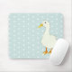 Un doux canard blanc demandant un cool en action debout, dressé contre un arrière - plan bleu avec des points blancs. Magnifique cadeau pour les amoureux du canard ou les amoureux des oiseaux, des animaux ou de la nature. Cartes de correspondance, autocollant, aimant, mug, tablier, t-shirt, affiche.