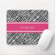 Un mousepad personnalisé avec les rayures modernes d'un zèbre modèlent et une rayure rose élégante où vous pouvez ajouter votre nom.