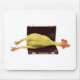 Amusement de bureau montré par un poulet en caoutchouc dans une serviette en cuir