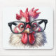 Drôle visage de coq portant des lunettes noires sur un arrière - plan blanc.