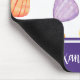 Tapis de souris coloré avec un motif de coquillages rouges, jaunes et violets en aquarelle, évoquant un voyage à la plage. Personnalisez-le avec votre nom dans une variété de polices disponibles.