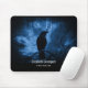 Mousepad avec l'image d'un corbeau noir la nuit perché sur une branche d'arbre avec des runes au-dessus desquelles on dit "corbeau noir". Moody et son atmosphère mystérieuse.
