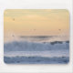 Le coucher du soleil avec les vagues se brisantes et les oiseaux volant chez Rockaway échouent dans Pacifica, Calfiornia