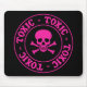 Toxique mousepad noir - lettrage rose avec crâne et os croisés.