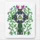 Ces Mousepad/tapis de souris comporte une croix celtique entourée par les vignes feuillues vertes avec les fleurs pourpres.