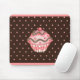 Un thème de couleur rose et marron décore ce tapis de souris en forme de cupcake.