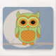 Adorable hibou aux yeux larges dans les années 70 funky inspiré des teintes rétro de vert et d'orange.