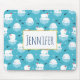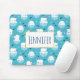 Mouse pad with a cute Christmas pattern featuring polar bears standing on floating ice wearing red santa hats. Little igloos, snowflakes and fish surround these adorable polar bears chilling on the water. Light blue background. Cute and whimsical holiday design.