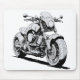 Un dessin à encre très détaillé d'une moto cyberpunk unique avec des lignes noires pointues et pas de logos. Ce design futuriste de vélo se distingue par sa forme originale, ce qui le rend parfait pour les fans de cyberpunk et de science-fiction. Idéal pour le pavé de souris.