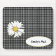 Motif de en vichy noir et blanc avec marguerite blanche. Le nom est modifiable.