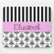 Tapis De Souris Damas français, bandes, noir et blanc, Votre nom