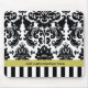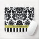 Tapis de souris Damask noir blanc chartreuse et rayures. Personnalisez avec du texte ou laissez vide.